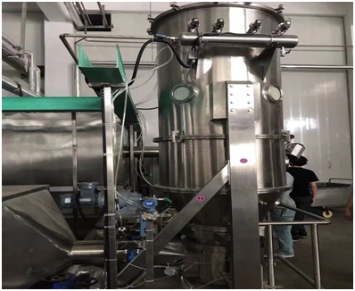 在制药、化工领域存在着大量的含有易燃易爆溶媒气体的物料及含有大量粉尘的物料的干燥,原来主要使用真空干燥、开式沸腾干燥机、开式气流干燥机进行此类产品的干燥,溶剂气体直接排放,污染环境。